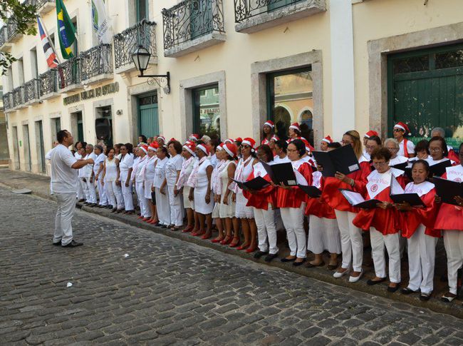Cerca de 80 idosos se apresentaram na calçada do casarão nº 421, que abriga a Defensoria, no Centro Histórico de São Luís. Servidores da instituição, turistas e demais transeuntes acompanharam a apresentação, que contou com repertório natalino e encerramento com a toada “Bela Mocidade”.