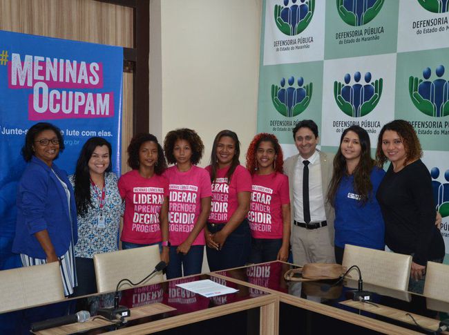 A Defensoria Pública do Estado (DPE/MA) foi a 35ª instituição a receber, na Grande São Luís, nos últimos dois anos, as ações do movimento “Meninas Ocupam”, idealizado pela Plan Internacional, como parte da campanha global “Por Ser Menina”. Na sede da instituição, na última segunda-feira (4), quatro adolescentes atendidas em projetos desenvolvidos pela organização não governamental conheceram a rotina de trabalho da DPE/MA, numa manhã de estímulos e inspirações que rederam bons exemplos de empoderamento e garantia de diretos.