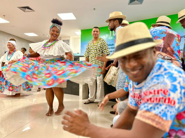 Além de cantos e ritualística com autoridades de matriz africana, o evento contou com intervenção artística emocionante e atual sobre a temática com a dramaturga Brena Maria e levou toda a tradição do tambor de crioula de Leonardo, que fechou a noite com um esquenta da maior festa popular do Brasil: o São João.