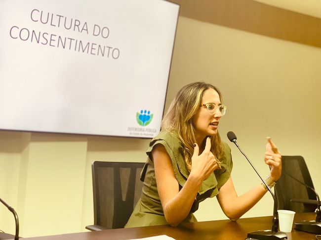 À tarde, foram realizadas as palestras "O ciclo da violência doméstica", com a defensora pública Denise Nepomuceno; "A metodologia reflexiva como instrumento de desconstrução das masculinidades e da violência", com o psicólogo Raimundo Ferreira, que atua no grupo reflexivo da 1ª Vara da Mulher, em São Luís; e "Criminologia crítica reflexões sobre o consentimento", com a defensora pública Ana Laura Migliavacca, que é master em Criminologia Crítica (Universidade de Pádua) e em Governança e Direitos Humanos (Universidade Autônoma de Madrid).