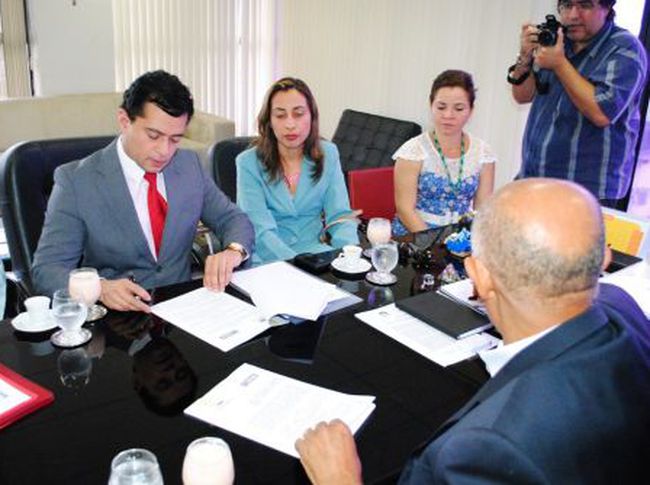 Em ato realizado na sede da Federação das Indústrias do Maranhão (Fiema), o defensor geral do Estado, Aldy Mello Filho, o presidente da Fiema e diretor regional do Sesi/MA, Edilson Baldez, e o diretor do Senai/MA, Marco Antônio Moura da Silva, assinaram convênio para implementação de parceria visando à qualificação técnico-profissional de mulheres assistidas pela DPE, que estejam em situação de violência doméstica, nas turmas regulares dos cursos oferecidos gratuitamente pelo Senai.