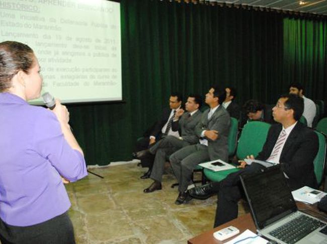 A apresentação do trabalho desenvolvido pela Defensoria do Maranhão foi feita por Aldy Mello Filho, com destaque para as ações de promoção aos direitos humanos no Estado. “Temos um núcleo itinerante de defesa de direitos humanos que vem desenvolvendo ações em todo o Estado especialmente no acompanhamento de conflitos fundiários e na defesa de comunidades quilombolas. A DPE também realiza um projeto de educação em direitos junto a crianças de 06 a 12 anos da rede pública de ensino, em parceria com o curso de pedagogia da FACAM. Com a FIEMA, a DPE executa o projeto “Ser pai é legal”, disponibilizando a realização de exames gratuitos de DNA, que vem diminuindo significativamente o número de ações de investigação de paternidade ajuizadas pela instituição. Vimos realizando, ainda, uma série de articulações voltadas à qualificação e à profissionalização de internos e egressos do sistema prisional, juntamente com o TJ e a SEJAP. Além disso, estamos finalizando o curso de cuidador de idosos, em parceria com a SECTEC, como estratégia de enfrentamento à violência contra o idoso”, destacou.
