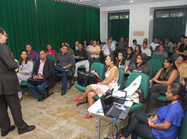 A Defensoria Pública do Estado (DPE) e a Secretaria de Estado de Justiça e Administração Penitenciária (Sejap) deram início na manhã desta quinta-feira (7), à segunda etapa do curso de aperfeiçoamento em execução penal, que desta vez reúne agentes penitenciários que atuam no sistema carcerário do estado. As boas vindas à nova turma foram dadas pela corregedora geral da DPE, Fabíola Barros, e pelos secretários adjuntos Frei Ribamar Cardoso (Justiça e Reintegração Social) e João Bispo Serejo (Estabelecimentos Penais).