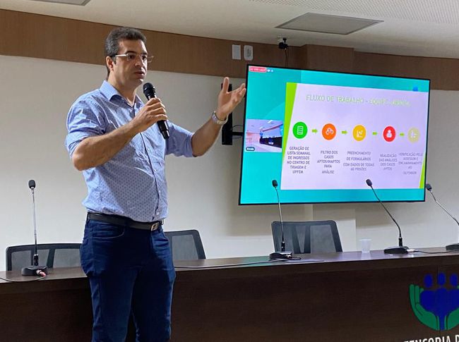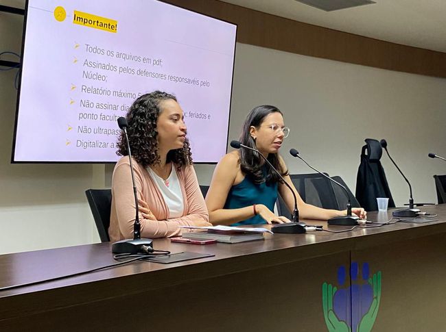 Curso - Os defensores públicos Bruno Dixon e Paulo Costa apresentaram o projeto aos novos participantes no primeiro dia de capacitação, bem como falaram sobre a planilha de gestão das unidades prisionais e aspectos práticos da execução penal no segundo dia. A defensora pública Maiele Morais Veras palestrou sobre o encarceramento feminino também no segundo dia do curso.
