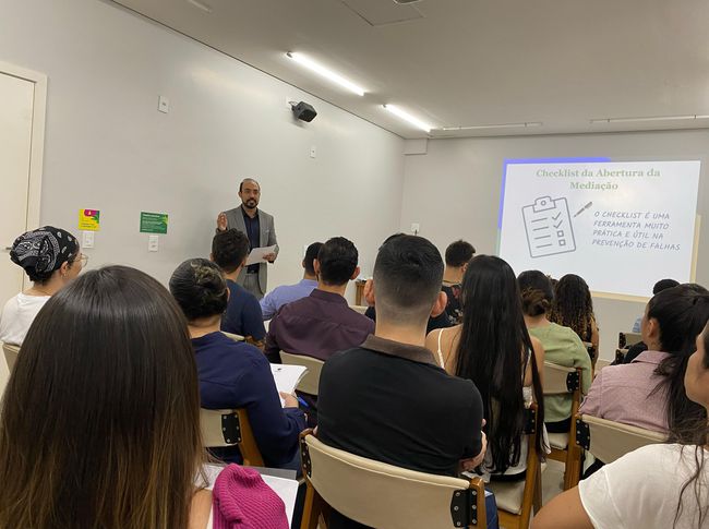 A Defensoria Pública do Estado do Maranhão (DPE/MA) realizou, esta semana, o curso "Mediação e Conciliação em Ação", no Centro Cultural Tatajuba. A capacitação teve como público-alvo os servidores da instituição e foi ministrada pelo defensor público e coordenador de Atendimento da DPE/MA, Thiago Josino Carrilho de Arruda Macedo.