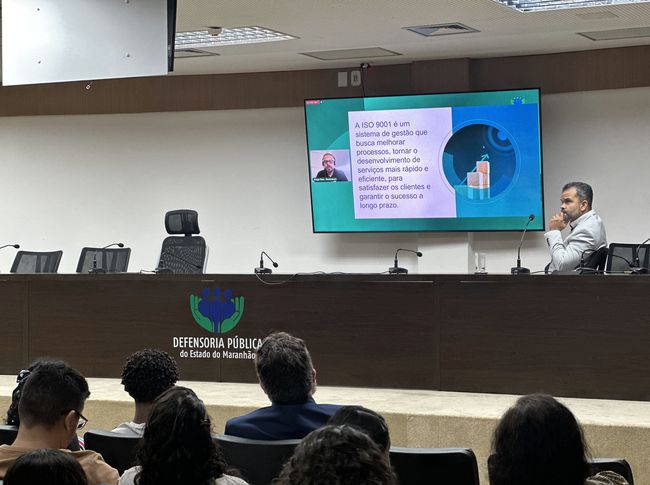 A Defensoria Pública do Estado do Maranhão (DPE/MA) deu mais um passo rumo ao compromisso pleno com a população maranhense. De forma pioneira, na busca pela certificação ISO 9001:2015, a instituição do sistema de justiça lançou, nesta sexta-feira (16), o Sistema de Gestão da Qualidade (SGQ). Apresentado ao público interno pela Assessoria de Planejamento e Ações Estratégicas da DPE/MA, o SGQ busca estabelecer melhorias contínuas de processos, de modo a prestar um atendimento de excelência a assistidos e assistidas que buscam os serviços da Defensoria Pública.