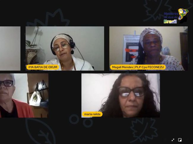 Também participaram do evento on-line representantes dos estados da Bahia, Rio de Janeiro e São Paulo. Um dos pontos altos da programação ficou por conta das bênçãos dadas pela Mãe Zelita (Bahia), Mãe Carmem de Oxum (São Paulo), Mameto Kátia Haddad (Pará), Mãe Cristina de Oya (Bahia), Mãe Isabel (Paraíba) e das Mulheres de Axé do Recôncavo.