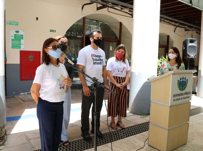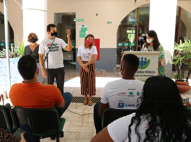 O evento, realizado no pátio interno da DPE/MA, respeitando todos os protocolos sanitários recomendados pelas autoridades de saúde, em razão da pandemia, contou com as falas de boas-vindas da diretora da Escola Superior da Defensoria Pública, Cristiane Marques, representando a Administração Superior, do procurador do Trabalho Marcos Rosa e da titular da Semcas, Andreia Lauande. A apresentação do projeto e os agradecimentos a todos os parceiros e instituições envolvidas couberam à assistente social da Defensoria Pública Guadalupe Barros, que integra a equipe do Núcleo de Direitos Humanos (NDH), responsável pela coordenação dos trabalhos na instituição.
