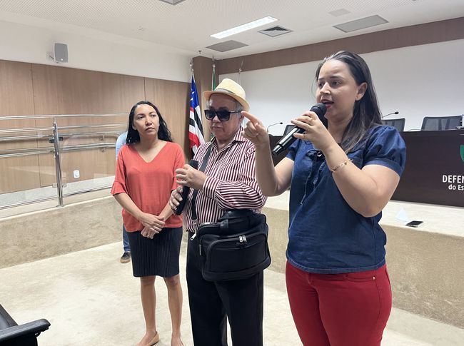 A coordenadora do Núcleo Psicossocial da DPE/MA, Andreia Lauande, destacou a importância do momento destinado ao público interno. “Temos um momento destinado ao nosso público interno, aos nossos servidores, de formação, de tirar dúvidas, de alinhamento, e até descobertas e curiosidades sobre o melhor atendimento à pessoa com deficiência visual. Então, é a Defensoria buscando acessibilidade, buscando inclusão a quem mais precisa”.