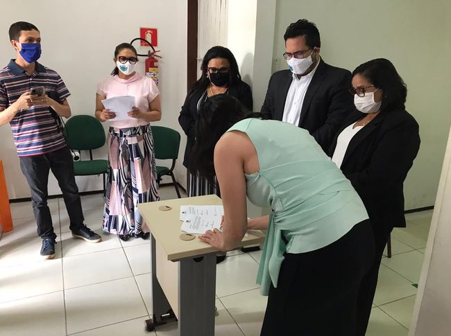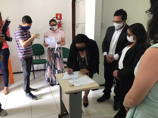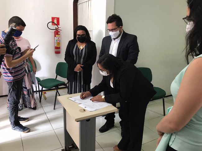 Para celebrar a parceria, foi assinado termo de cooperação interinstitucional entre as partes, ato realizado no núcleo regional da DPE/MA, em Paço do Lumiar, e que contou com a presença do subdefensor-geral do Estado, Gabriel Santana Furtado Soares, e da prefeita Maria Paula Azevedo Desterro. Também participaram do encontro, a defensora pública e coordenadora do Núcleo da DPE de Paço, Débora Alcântara Rodrigues, e a assessora de Projetos Especiais, Rosicléia Costa, bem como a secretária municipal de Desenvolvimento Social, Maria Helena Veiga Vieira.