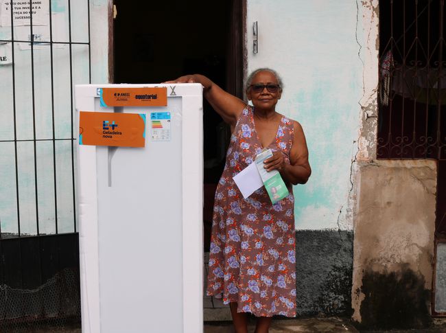 As famílias, que foram identificadas pela Defensoria Pública, entregaram seus refrigeradores velhos ou danificados e receberam geladeiras novas. Esse foi o caso de Maria dos Remédios Almeida Borges, que vive na Ilhinha há 36 anos e espera que o novo eletrodoméstico possibilite um menor consumo de energia e mais economia na conta de luz.