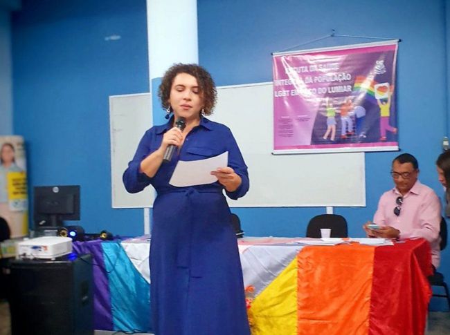 A Defensora Pública Lindevania Martins, uma das titulares do Núcleo de Defesa da Mulher e População LGBT, da Defensoria Pública do Estado (DPE/MA), participou do evento de Escuta da Saúde Integral da População LGBT de Paço do Lumiar, que faz parte de uma rede diálogos de políticas inclusivas que também abrangem os municípios de São José de Ribamar e Raposa.