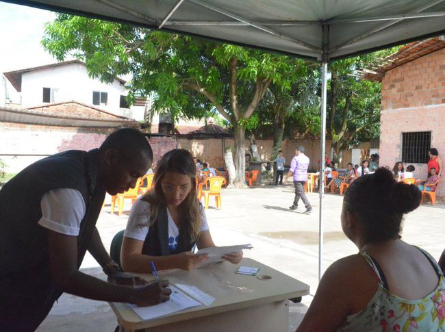 A Defensoria Pública do Estado integrou ação social realizada na comunidade Recanto Verde, na Vila Itamar, levando diversos serviços à população local, como atendimento e orientação jurídica, agendamentos para reconhecimento espontâneo de paternidade, atuação na área de registro público, negociação de dívidas, dentre outros.