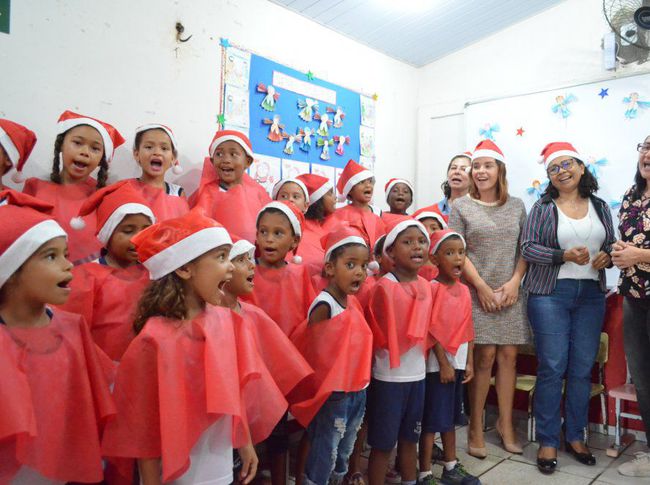 Acompanhados pelo Papai Noel e pela equipe dos Correios, os representantes da Defensoria foram recepcionados com muita empolgação e alegria pelas crianças e com uma apresentação especial de músicas natalinas para o momento.