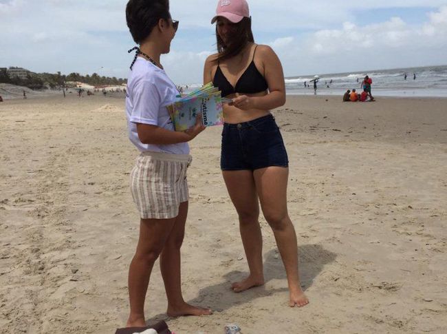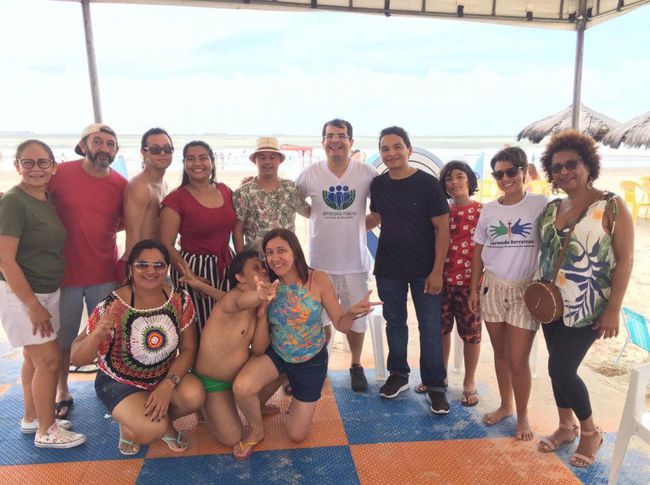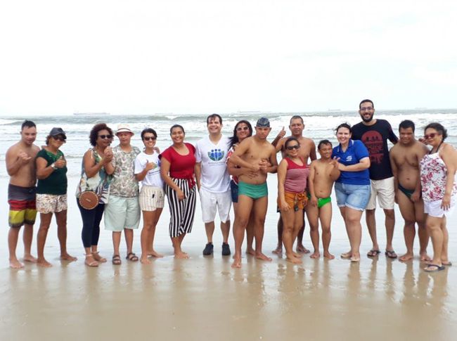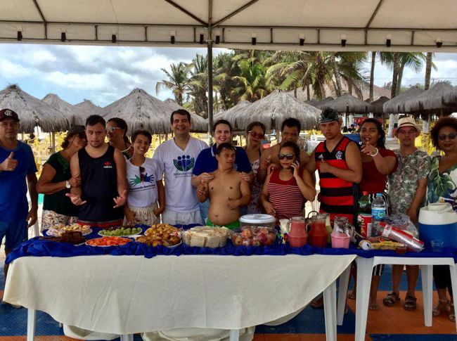 Jovens com síndrome de Down, que no início do ano receberam capacitação profissional no curso “Atendimento ao Público: Orientando Pessoas com síndrome de Down para Atender Bem”, por meio de parceria entre a Defensoria Pública do Estado (DPE/MA) e o Sebrae, tiveram uma manhã de domingo animada e cheia de atividades na Praia do Calhau.
