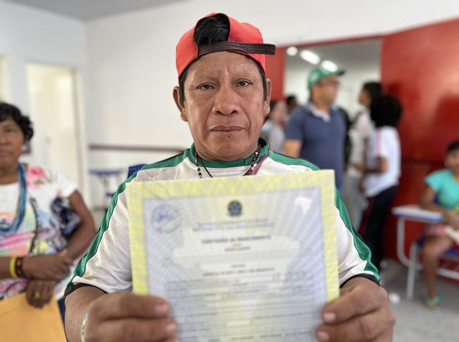 “Às vezes ficamos doentes e não temos nem um documento para mostrar ou provar que somos nós mesmos. Também quando vamos pedir algum benefício sempre pedem a documentação, mas muitos do meu povo não têm. Agora, quase todos foram regularizados ou estão quase ok”, afirmou o líder indígena Osmar Ka’apor.