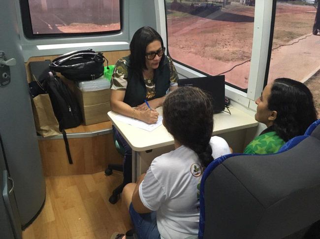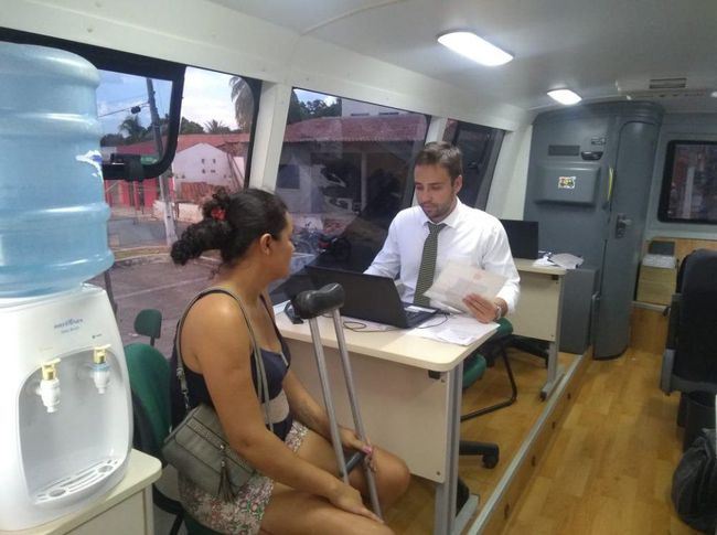 Assim como ela, outras dezenas de pessoas puderam resolver demandas e pendências de forma rápida e próximo de suas residências na unidade móvel da instituição. Nas ações, foram ofertados diversos serviços, dentre eles: atendimento jurídico, reconhecimento espontâneo de paternidade e atuação na área de registro público.