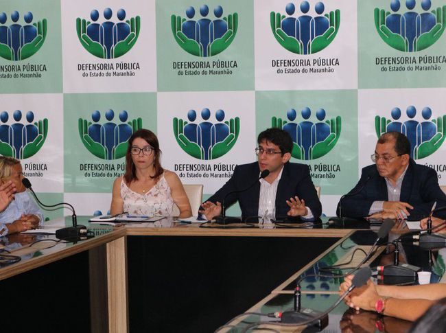 A reunião foi conduzida pela defensora pública Cristiane Silva Marques da Fonseca e o defensor público Marcus Patrício Soares Monteiro, do Núcleo de Moradia e Defesa Fundiária, e foi realizada no auditório da sede da DPE/MA.