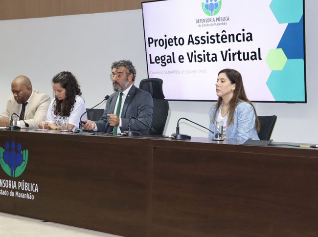 Programação - Ainda durante o evento, foram apresentados os projetos de acesso à Justiça e práticas exitosas realizadas pelo Núcleo de Execução Penal no sistema prisional: “Assistência Legal e Visita Virtual”, “Maternagem, Cárcere e Afeto”, “Eu e Ela: Repensando o Gênero” e “Escrita que Liberta”. As defensoras públicas Julyana Patrício e Maiele Morais apresentaram as iniciativas ao lado do defensor Bruno Joviniano de Santana e o subdefensor Paulo Costa.