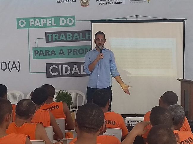 A DPE de Presidente Dutra também participou da programação da Semana, onde o defensor Ian Barbosa Nascimento ministrou palestra sobre os direitos e deveres dos internos durante a execução da pena, tirando dúvidas a respeito de benefícios como a progressão de regime, livramento condicional, saída temporária e outros.