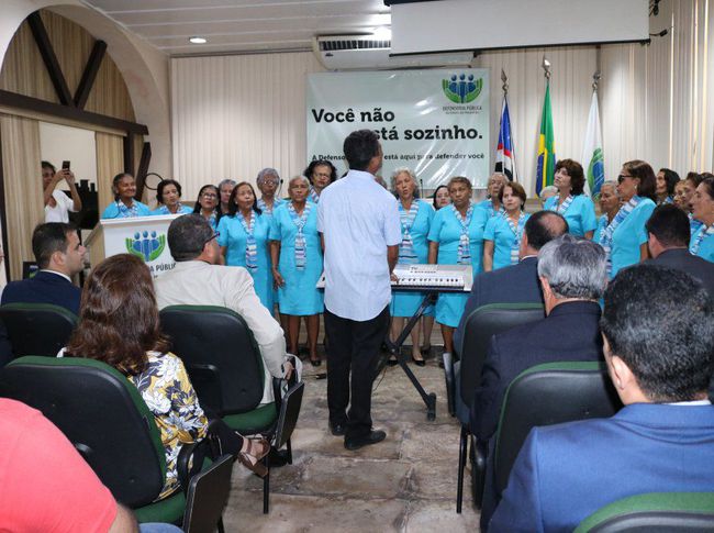 Após a apresentação dos idosos que integram o coral do Sesc, “Vozes de Sabedoria”, conduzido pelo regente Francisco Neelman, o presidente da Comissão Gestora do Plano de Logística Sustentável, do TJMA, o desembargador Jorge Rachid Mubárack Maluf, deu boas-vindas à Defensoria e à PGE, destacando a importância das duas instituições para o fortalecimento das ações compartilhadas pela associação.