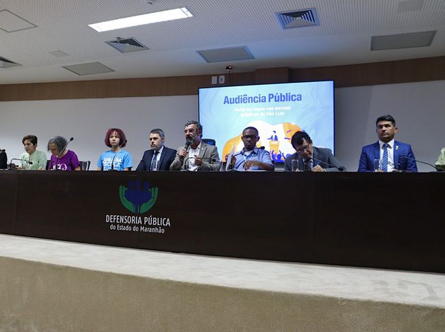 Em audiência pública promovida nesta quinta-feira (27), a Defensoria Pública do Estado (DPE/MA), por meio do Núcleo de Defesa da Criança e do Adolescente (NDCA), cobrou providências do Município de São Luís quanto à disponibilização de vagas na rede pública de ensino da capital. O encontro, ocorrido na sede da DPE, contou com a presença de autoridades dos três Poderes, trabalhadores da educação, representantes de conselhos tutelares, movimentos sociais, além de pais, estudantes e comunidade em geral.
