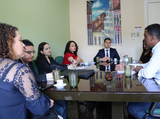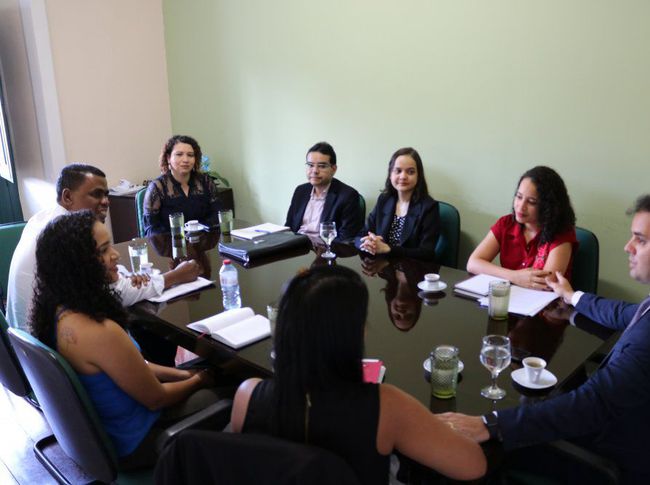 Participaram da reunião o defensor público-geral do Estado, Alberto Pessoa Bastos, a defensora Lindevania Martins, titular do Núcleo de Defesa da Mulher/LGBT, a defensora Caroline Christine Barros Nogueira, titular do Núcleo de Execução Penal e o defensor Bruno Dixon de Almeida Maciel, coordenador do Núcleo de Execução Penal e o Núcleo Psicossocial da DPE.