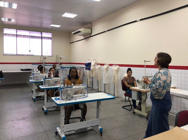 Ainda como parte da parceria, foram iniciadas aos aulas do curso de “Corte e Costura”, oportunizando aos participantes noções básicas e conceitos de corte, costura e modelagem sob medida em peças do vestuário, respeitando procedimentos e normas técnicas, de qualidade, ergonomia e seguindo princípios estéticos.
