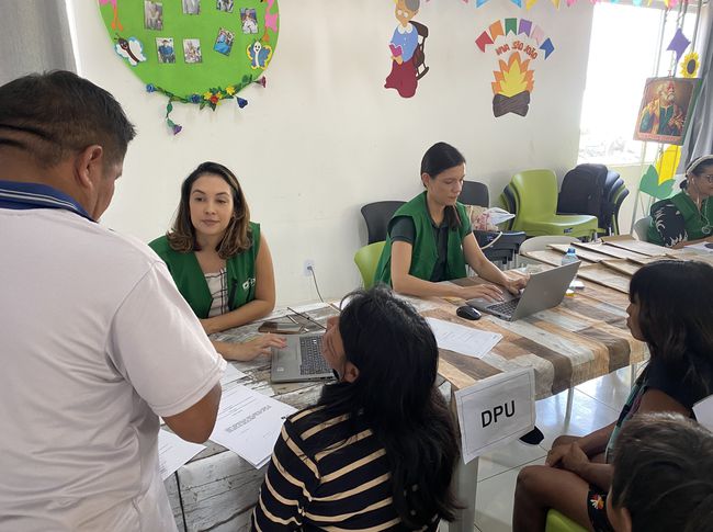 Foram disponibilizados vários serviços, como pedido de segunda via e retificação de certidão de nascimento e de casamento, pela DPE; emissão de 2ª via de certidões, com apoio dos Cartórios de Zé Doca e Araguanã; emissão de carteira de identidade, pelo Instituto de Identificação (Ident); título eleitoral e alistamento, pelo Tribunal Regional Eleitoral; carteira de trabalho, com o Viva/Procon; acesso ao programa Cadastro Único, com o apoio do Município. Também foram prestadas orientações jurídicas afetas à previdência, atendidas pela Defensoria Pública da União, bem como questões relacionadas à Funai, dentre outros.