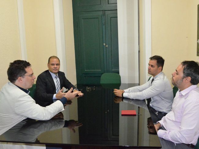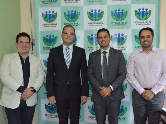 O defensor-geral Alberto Pessoa Bastos, o subdefensor Gabriel Furtado e o defensor titular do Núcleo de Defesa da Criança e Adolescente, Davi Veras, reuniram-se, nesta quarta-feira (27), na sede da Defensoria Pública estadual (DPE/MA), com o titular da Secretário Estadual de Esportes e Lazer (Sedel), Rogério Cafeteira.