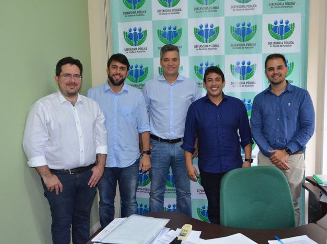 O defensor público-geral do Estado, Alberto Pessoa Bastos, e o subdefensor-geral, Gabriel Santana Furtado, receberam na tarde desta sexta-feira, na sede da Defensoria Pública do Estado do Maranhão (DPE/MA), em São Luís, os deputados Pedro Lucas Fernandes (federal) e Neto Evangelista (estadual) e o presidente da Câmara Municipal de São Luís, o vereador Osmar Filho. Na ocasião, discutiram o apoio legislativo na promoção do acesso à Justiça no estado.