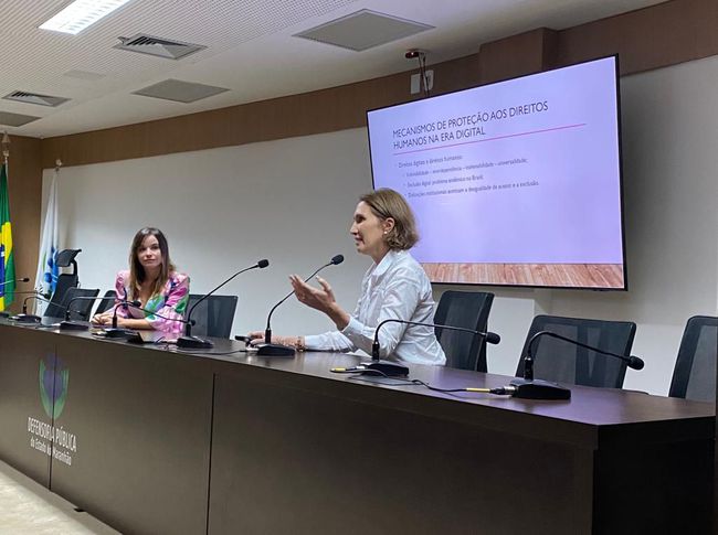 “Mecanismos de proteção aos direitos humanos na era digital” foi o tema abordado pela pós doutora em Direito Mônica Costa e pela defensora pública Cristiane Marques, 1ª subdefensora-geral do Estado, na terceira palestra da tarde.