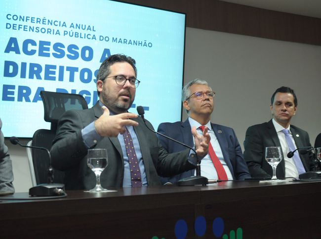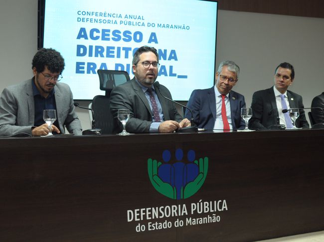 A mesa de autoridades da Conferência também foi composta pela 1ª subdefensora Cristiane Marques, pelo corregedor-geral da DPE/MA, Aldy Mello Filho, o desembargador José Bernardo Rodrigues, representando o corregedor-geral de Justiça, Froz Sobrinho, o deputado Ricardo Arruda, representando a presidente da Assembleia Legislativa, Iracema Vale, o presidente da Associação das Defensoras e Defensores Públicos do Estado do Maranhão, Cristiano Matos, e a ouvidora-geral Fabíola Diniz.