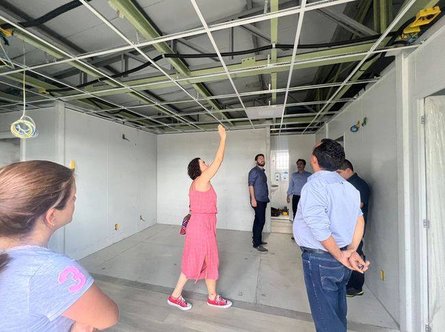 Esses módulos são produzidos em uma fábrica controlada, com sistemas especializados, que possibilitam a produção em larga escala de componentes pré-fabricados que, em seguida, são transportados para o local da construção para montagem.