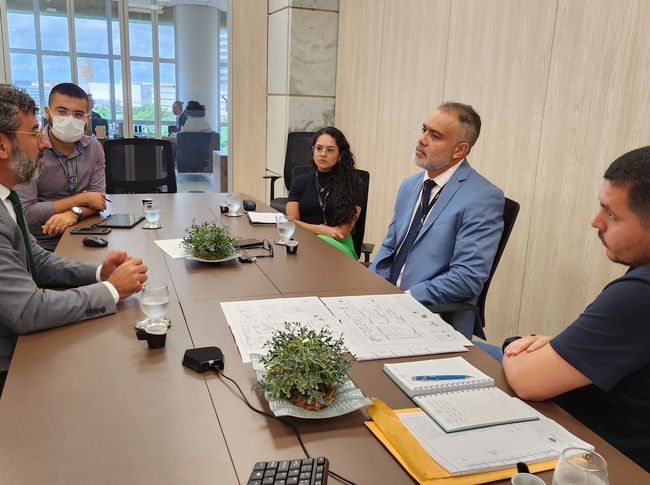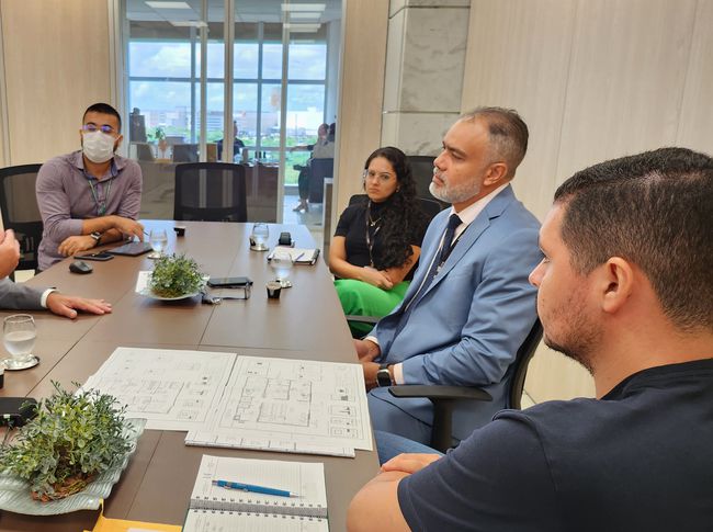 O 2º subdefensor-geral Paulo Costa e o coordenador da Supervisão de Obras e Reformas da DPE/MA, o engenheiro Luiz Roberto Gomes, reuniram-se com o secretário de Educação de Teresina, Nouga Cardoso, e sua equipe, na sede da Defensoria, em São Luís. Foi um momento para compartilhar detalhes da construção, a necessidade de manutenções periódicas, além de orientações sobre o processo licitatório para este tipo de projeto.