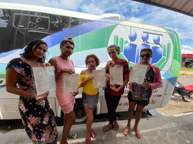 Foram cinco dias de intensas atividades e articulação com os municípios e os cartórios. Tudo para garantir que, apenas um dia depois do requerimento, fosse realizada a emissão das novas certidões de nascimento das assistidas com os nomes e gênero com os quais elas se identificam. Nas duas cidades que receberam o ônibus da DPE, os mutirões foram conduzidos pelos defensores públicos Florenço Brandão e Lucas Uchôa e contaram com a participação da assistente social Nathalia Tinôco e dos assessores Alana Almeida e Álvaro Rodrigues.