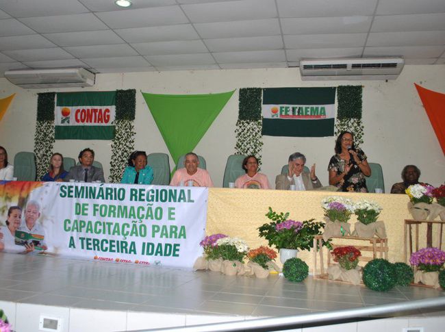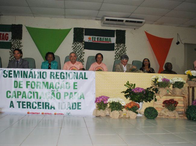 Promovido entre os dias 11 e 13 deste mês pela Federação dos Trabalhadores na Agricultura do Estado do Maranhão (Fetaema), o Seminário Regional de Formação e Capacitação para a Terceira Idade contou com a participação do defensor público titular do Núcleo de Defesa do Idoso, da Pessoa com Deficiência e da Saúde, Cosmo Sobral da Silva; da coordenadora do Centro Integrado de Apoio e Prevenção à Violência contra a Pessoa Idosa (Ciapvi), da Defensoria Pública do Maranhão (DPE/MA), assistente social Isabel de Fátima Lopizic. Uma apresentação do coral “Vozes de Sabedoria”, do SESC/MA, abriu o ato solene de instalação do seminário.