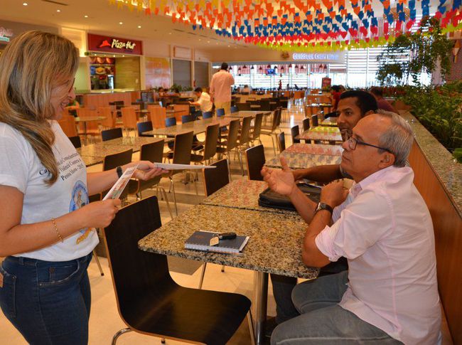 Com o tema “O direito do idoso pede passagem”, a Defensoria Pública do Estado (DPE/MA), por meio do Centro Integrado de Atenção e Prevenção à Violência contra o Idoso (Ciapvi), realizou panfletagem nos Terminais de Integração de Transporte Público da Praia Grande e da Cohama, nos shoppings São Luís e Rio Anil, no Instituto de Ensino Superior Franciscano (IESF) e nas Universidades Ceuma e Pitágoras.
