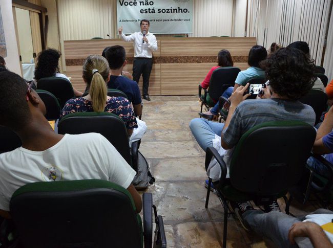Acompanhados da médica geriatra Jacira Serra, professora da disciplina Saúde do Idoso, alunos do 4º período do curso de Medicina, da Universidade Federal do Maranhão (Ufma), visitaram nesta terça-feira (6), a sede da Defensoria Pública do Estado (DPE/MA) para conhecer um pouco mais do trabalho desenvolvido pelo Núcleo de Defesa do Idoso e pelo Centro Integrado de Apoio e Prevenção à Violência contra o segmento, o Ciapvi. No auditório da instituição, as apresentações ficaram por conta do defensor público Benito Pereira Filho e da assistente social Isabel Lopizic.