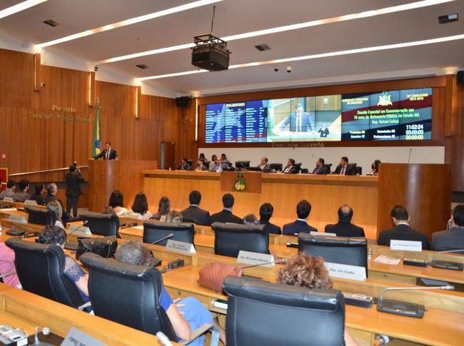 Membros e servidores da Defensoria Pública do Maranhão, além de representantes de instituições governamentais e sociedade civil, lotaram o Plenário da Assembleia Legislativa, nesta quinta-feira (18), para as homenagens concedidas pelo Parlamento à instituição que completa 16 anos de relevantes serviços prestados à população socioeconomicamente vulnerável do Maranhão. De iniciativa do deputado estadual Rafael Leitoa, a sessão especial também fez alusão ao Dia Nacional da Defensoria Pública, comemorado no dia 19 de maio.