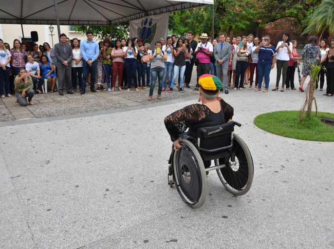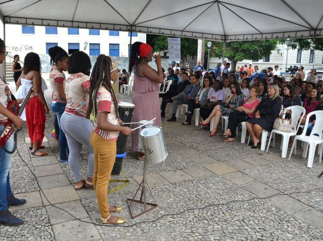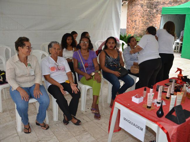 Atividades - A vasta programação do evento em homenagem às mulheres, além da Praça, ocupou também as dependências da sede, na Praia Grande, onde as assistidas e servidoras puderam usufruir de serviços de cuidados com a estética facial, saúde, aferição de pressão e teste de glicemia, vacinação e atendimento na área de fisioterapia e nutrição. Dentre as várias apresentações culturais, chamou bastante atenção pela força e beleza a realizada pelo bloco afro, da comunidade Fé em Deus. Outro momento especial da atividade na Praça Nauro Machado foi o reggae ‘levado’ pela dançarina cadeirante Aracy Campos, que convidou todas as mulheres para sua apresentação. O público também se emocionou com a apresentação da banda Retratos e Canções, formada por grupo de idosos do Sesc, e pelos versos declamados pela poetiza Raimunda Frazão.
