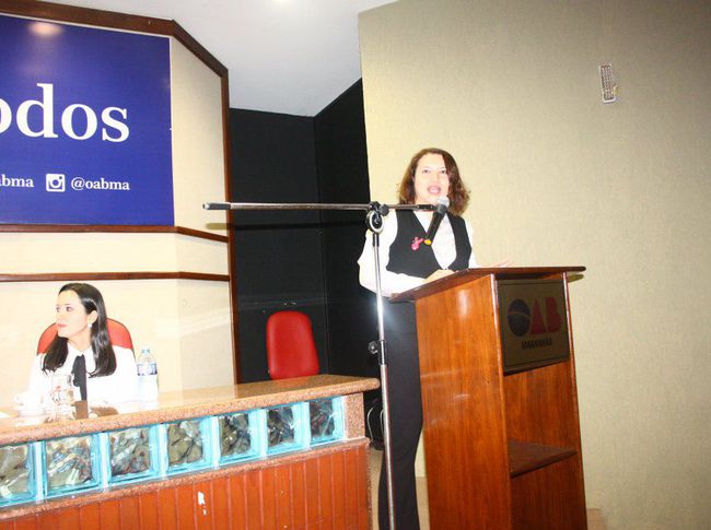 A defensora pública Lindevania Martins, titular do Núcleo Especializado de Defesa da Mulher e da População LGBT, ministrou palestra por ocasião da realização do I Fórum da Mulher Advogada: Teoria e Prática", promovido pela seccional maranhense da Ordem dos Advogados do Brasil (OAB/MA), por intermédio das Comissões da Mulher e da Advogada e de Direito da Família, daquela instituição.