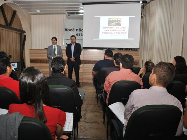 Defensores públicos com atuação na capital e interior do estado, especialmente os da área criminal, participaram nesta sexta-feira (7), no auditório da Defensoria Pública do Estado (DPE/MA), do curso de extensão “Tribunal do Júri – Teoria e Prática”, ministrado pelo defensor público do Piauí Juliano de Oliveira Leonel. A capacitação, promovida pela Escola Superior da DPE/MA (Esdep), também reúne estagiários da instituição e advogados, como parte da parceria firmada com a Escola Superior de Advocacia (ESA), tendo como objetivo fortalecer a atuação dos defensores públicos e demais operadores do Direito frente ao rito previsto no Código Penal.