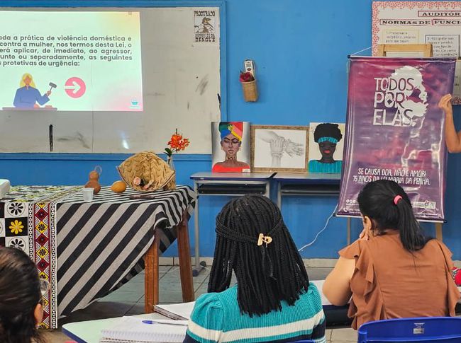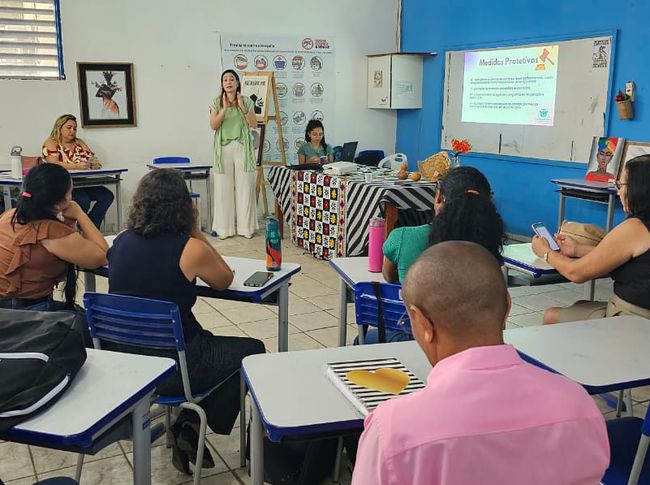 O auditório do Centro de Ensino Dorgival Pinheiro de Souza, em Imperatriz, foi cenário da formação promovida pela Defensoria Pública do Estado (DPE/MA), com o tema "Educação que Protege: Ações de Prevenção e Combate à Violência Contra a Mulher". O evento, conduzido pela defensora pública do Núcleo da Mulher e População LGBTQIA+, Ana Luisa Superbi, contou com a presença de gestores e professores.