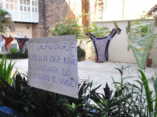 Comportamentos como assédio sexual, desrespeito ao “não”, objetificação da mulher e relativização da violência contra o segmento foram amplamente discutidos e repudiados, durante audiência pública, promovida pelo Núcleo de Defesa da Mulher e da População LGBT, da Defensoria Pública do Estado (DPE). O evento, que reuniu representantes de instituições que compõem a rede de proteção à mulher em torno do debate contra a cultura do estupro, teve como um dos pontos altos a exposição de um varal de cartazes e calcinhas, em favor da liberdade sexual e em protesto aos inúmeros registros de crimes desta natureza no Brasil e no Maranhão.