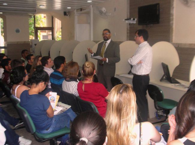 Cerca de 30 alunos do 4º período do curso de Medicina da Ufma, acompanhados da professora Christiana Salgado e da presidente da SBGG/MA, a geriatra Jacira Nascimento Serra, estiveram na sede da DPE/MA. O defensor Cristiano Matos aproveitou a oportunidade para alertar os alunos sobre a importância de conhecer um pouco mais sobre a realidade dos idosos, iniciativa que refletirá de forma positiva na construção da relação entre médico e paciente.