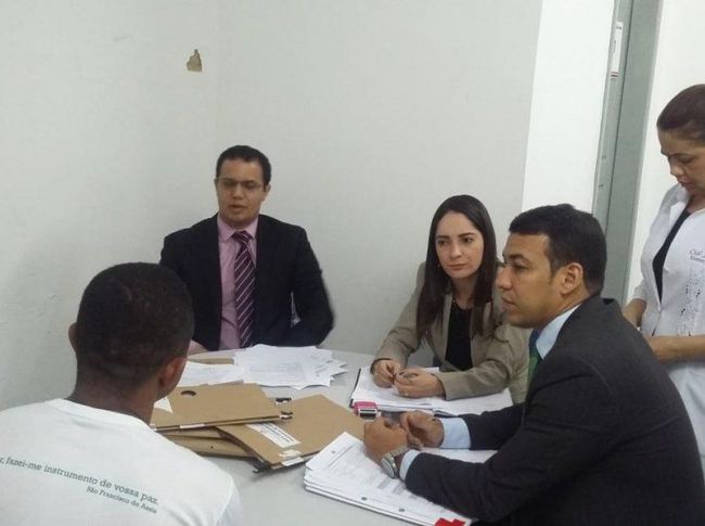 Os defensores públicos titularizados na Defensoria Pública estadual (DPE/MA), em Santa Inês, Alex Pacheco Magalhães, Enis Viegas de Sousa e Rafael Caetano Alves Santos analisaram, esta semana, a situação de quase 70 detentos durante força-tarefa realizada na Unidade Prisional de Ressocialização (UPR) daquele município, localizado na Região do Vale do Pindaré. O objetivo da ação foi dar celeridade à tramitação de processos criminais da comarca, com vistas a amenizar o clima de tensão dentro da unidade, frente ao crescente número de detentos na região.