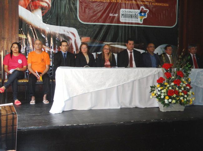 Formando a mesa com representantes dos Poderes Executivo e Judiciário, da DPE/MA e do Ministério Público, a interna do Presídio Feminino, Vanessa de Sousa Matos, de 24 anos, foi quem abriu os discursos. Ela falou um pouco sobre a própria vida dentro do estabelecimento penal. “Na unidade prisional já fiz vários cursos, fiz o de informática, cabelereiro, depilação e outros. Acredito que isso vai me ajudar muito quando eu sair”, contou Vanessa Matos.