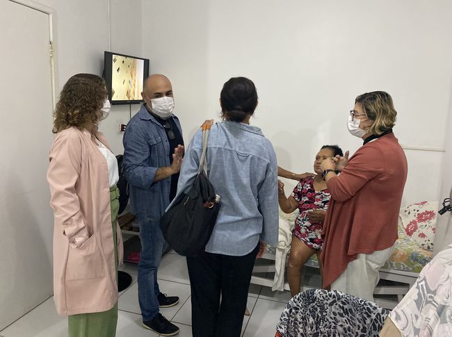 Seguindo o planejamento elaborado pela Rede, o primeiro a receber a visita foi o ILPI Solar do Outono, localizado no conjunto Cohab Anil I. Na entrada, o diretor da Casa recebeu todos os representantes das organizações e das entidades envolvidas e guiou o grupo pelas instalações, apresentando a estrutura física e, também, a execução de uma gestão híbrida, ou seja, formada tanto pela assistência social quanto pela saúde.