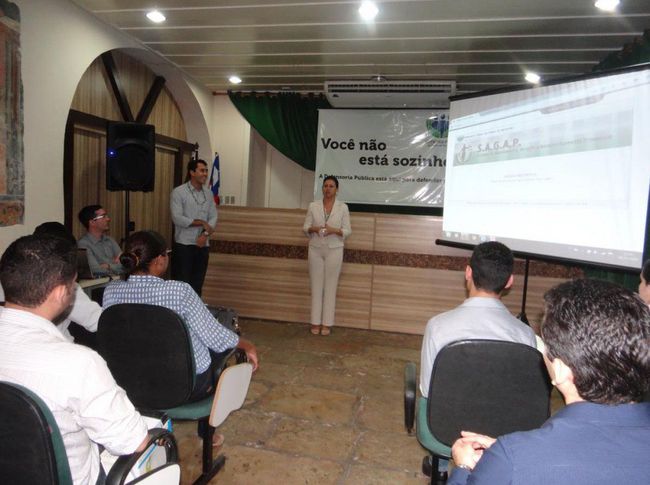 Programação - Durante o primeiro dia do treinamento, de iniciativa da Subdefensoria em parceria com a Escola Superior da DPE, os novos estagiários conheceram o Sistema On-line de Atendimento, Geração e Acompanhamento Processual (Sagap) e suas possibilidades, sob a orientação do chefe da Divisão de Análise e Desenvolvimento de Sistemas, Alano Abreu.